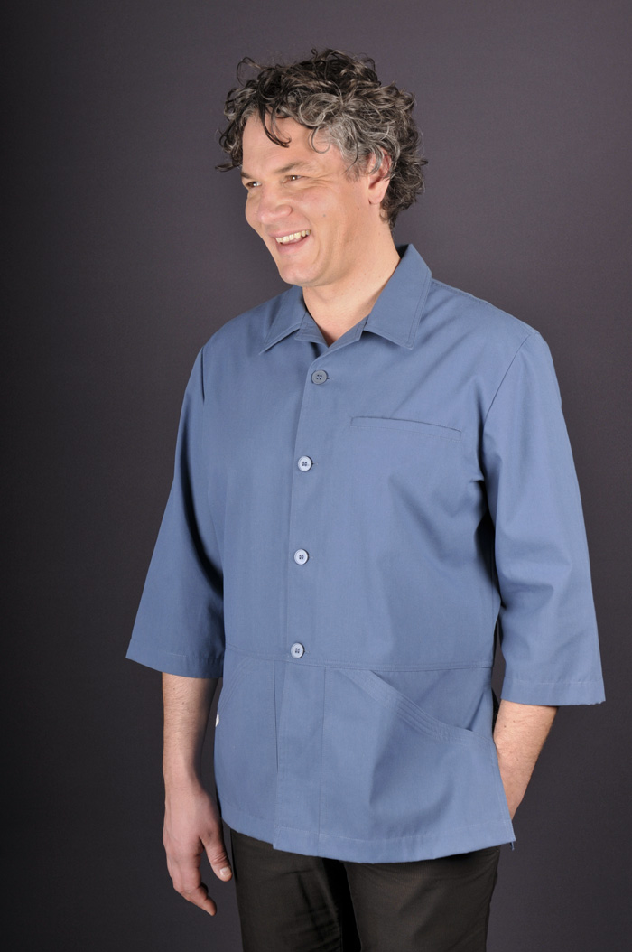 Style veste col chemise, aisance aux épaules, soufflets discrets, boutons devant, découpe de taille surpiqué. longueur bas de fesses, 2 poches avant surpiquées, fentes latérales pour confirt aux hanches, poche buste cachée.